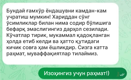 ✔ Ўзбекистон бўйлаб етказиб бериш