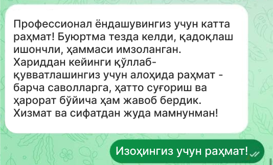 Миннатдор мижозлар изоҳлари